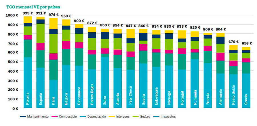 «España es el segundo país con el TCO más alto para vehículos eléctricos: 991€ mensuales»