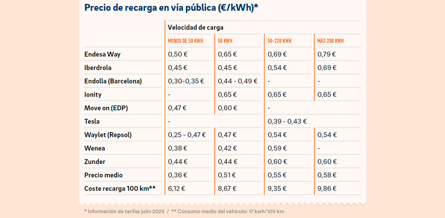 Como puede observarse en la tabla, a medida que aumenta la velocidad de recarga, también aumenta el precio del kWh.