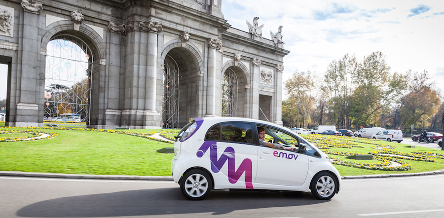 emov es una compañía española con sede en Madrid que ofrecerá un servicio de carsharing en modo free floating. Es decir, el usuario puede coger y dejar el coche en cualquier punto de la ciudad que se encuentre dentro de la zona de servicio. De momento su área de actuación abarca el perímetro interior de la M-30 además de la práctica totalidad de la Ciudad Universitaria de Madrid, el perímetro comprendido entre la calle de Alcalá y la calle de Arturo Soria hasta su confluencia con el Nudo de Manoteras y en la zona Norte de la capital, más allá de la Avenida de la Ilustración, hasta la calle Cardenal Herrera Oria.