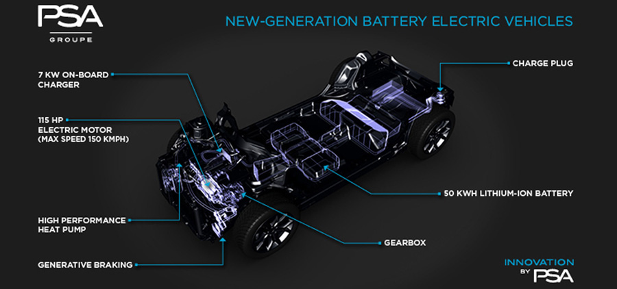 Sobre la plataforma CMP, desarrollada en colaboración con Dongfeng Motors y destinada a vehículos urbanos, berlinas de elevado volumen de ventas y SUV compactos, se construirá la e-CMP. Permitirá ofrecer una nueva generación de vehículos 100% eléctricos polivalentes y espaciosos que dispondrán de una autonomía de hasta 450 km y de unas soluciones de recarga ultrarrápida con hasta 12 km de autonomía por minuto de recarga. Se comercializarán 4 versiones eléctricas de aquí a 2021, la primera de ellas en 2019.