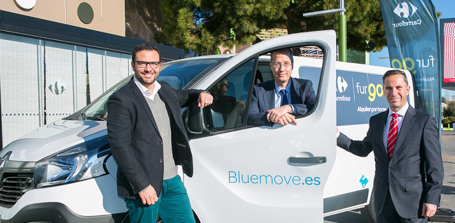 Se trata de una solución de movilidad que pone a disposición de los clientes de los establecimientos Carrefour furgonetas Renault Kangoo y Traffic que se podrán reservar por horas y estarán localizadas en plazas de aparcamiento preferentes en el hipermercado. El cliente, una vez se registre en la App de Bluemove y disponga de su tarjeta Bluecard, podrá recoger directamente el vehículo en el propio parking del hipermercado sin necesidad de pasar por ningún mostrador.