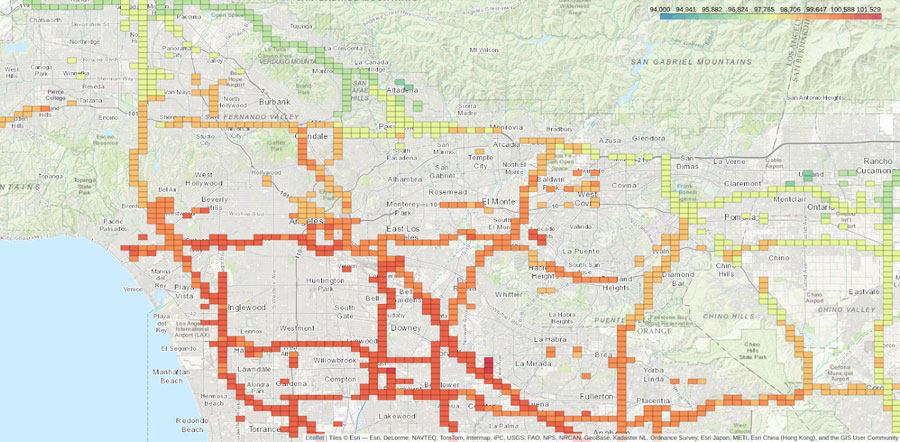 - Áreas de conducción peligrosa: Este paquete de datos identifica áreas peligrosas para la conducción, de acuerdo con el volumen de frenazos bruscos y accidentes en una zona específica. A pesar de que las autoridades municipales suelen conocer las localizaciones donde se producen colisiones de forma significativa, el paquete de datos sobre áreas de conducción peligrosa permite identificar ubicaciones propensas a registrar situaciones próximas al accidente, lo que facilita el desarrollo de estrategias para reducir los riesgos.