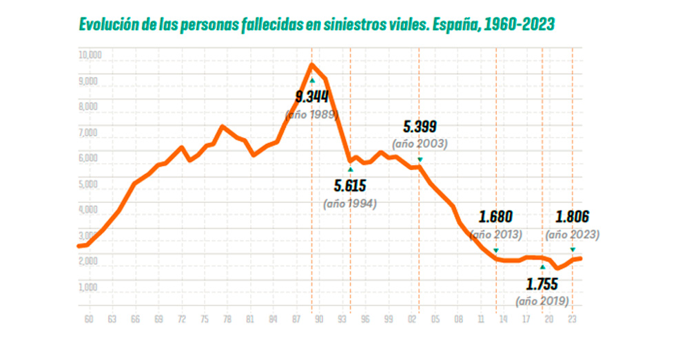 En 2023 fallecieron 1.806 personas y otras 9.265 resultaron heridas graves como consecuencias de accidentes de tráfico ocurridos tanto en vías interurbanas como urbanas.
