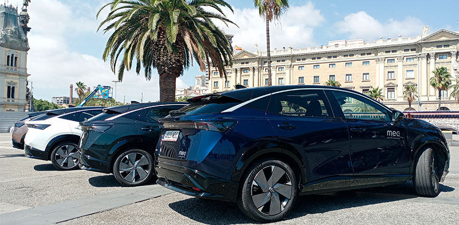 Actualmente, MEC funciona en la capital catalana y en Vilafranca del Penedés, con una flota 100% eléctrica compuesta por 35 Nissan Leaf, 8 furgonetas eléctricas y, ahora, los nuevos Ariya.