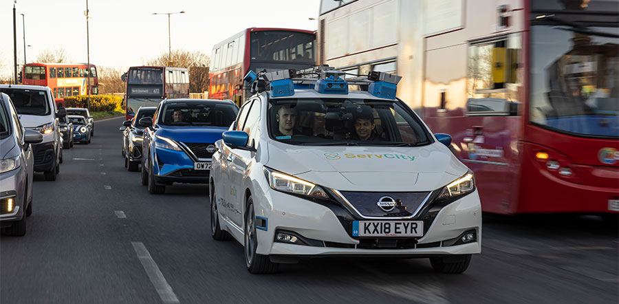 Fabricado a partir de un Nissan LEAF 100 % eléctrico, el vehículo autónomo y conectado (CAV) ServCity ha completado con éxito unas pruebas de validación cada vez más exigentes en las carreteras de Londres.