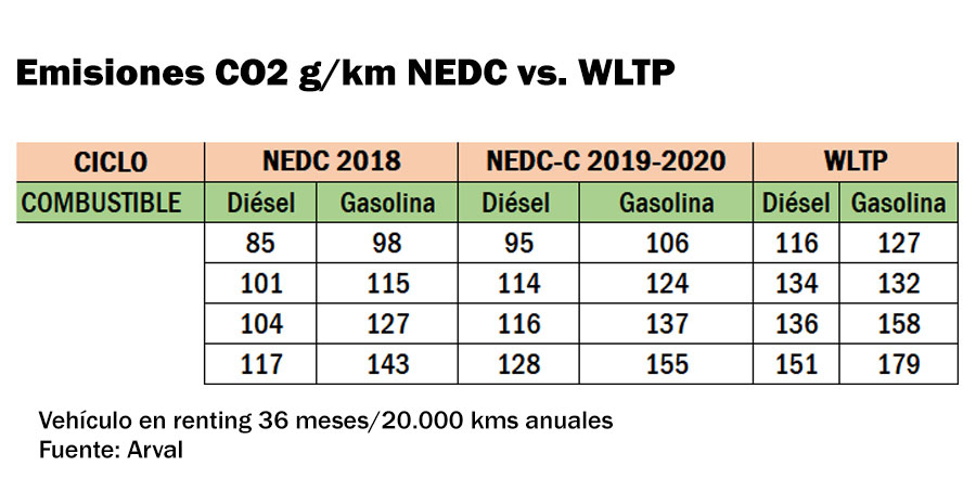 De esta forma, según Arval, las cifras homologadas de emisiones medias de CO2 de los automóviles diésel y gasolina sufrirán un significativo aumento, con más incidencia entre los vehículos alimentados con gasóleo. En concreto, hasta un 36% (34 gramos más de CO2 por kilómetro) en los diésel en el periodo 2018-2021, y de hasta un 30% (36 gramos más) en los de gasolina.