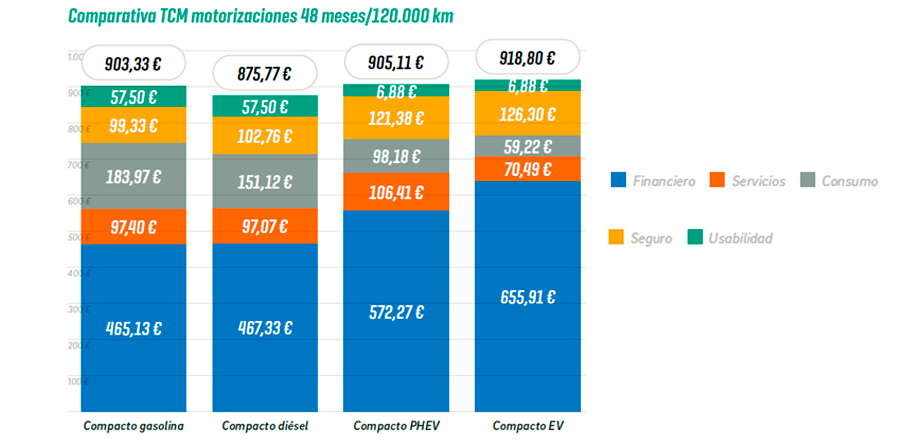 Adicionalmente, los intervalos de mantenimiento de las nuevas tecnologías de propulsión (GLP, Gasolina, Diesel, HEV, PHEV, EV, GNP, MHEV, etc.) hacen más necesario el conocimiento de las diferentes alternativas para seleccionar la más apropiada. - Variación en los consumos de carburante, tanto en el consumo propio de cada vehículo, como en el coste del carburante que utilice, así como las diferentes alternativas de recarga según uso.